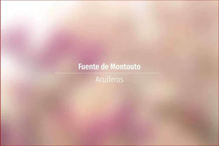 Fuente de Montouto. Acuífero en Asturias: Cuenca: Norte Unidad Hidrogeológica: Unidades aisladas Sistema acuifero: Unidades precarboníferas Toponimia: Fuente de Montouto Cota: 171 Naturaleza: Manantial Uso: Abastecimiento a núcleo ...