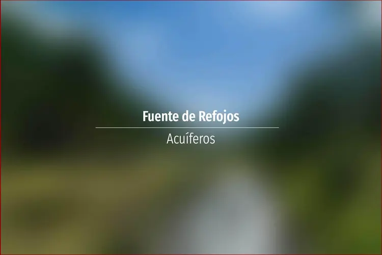 Fuente de Refojos. Acuífero en Asturias: Cuenca: Norte Unidad Hidrogeológica: Unidades aisladas Sistema acuifero: Acuífero aislado Toponimia: Fuente de Refojos Cota: 123 Naturaleza: Manantial Uso: Fuente pública Perímetro: No ...